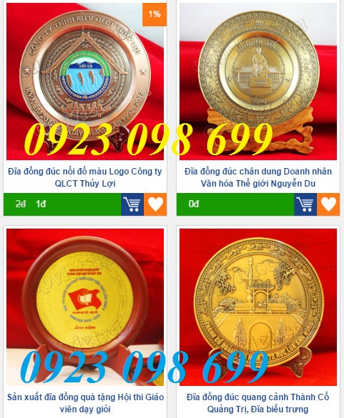 Chuyên sản xuất: Đĩa đồng đỏ, Đĩa hợp kim mạ vàng, Đĩa hợp kim mạ đồng,Đĩa hợp kim mạ bạc, Đĩa đồng viền gỗ,Đĩa đúc nổi logo,Đĩa đúc 3D, đĩa đúc phong cảnh,Cung cấp quà tặng cho các sự kiện như: Lễ khởi công, lễ khánh thành, kỷ niệm ngày truyền thống, quà tặng hội nghị khách hàng, quà tặng cho sự kiện, quà tặng khách hàng vip.. Chuyên chế tác các sản phẩm biểu trưng đồng,đĩa lưu niệm bằng đồng,bằng bạc.đĩa mạ vàng 24k cao cấp, biểu tượng logo doanh nghiệp làm quà tặng sự kiện,quà đối ngoại cao cấp..