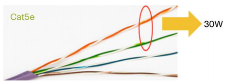 Như được định nghĩa trong IEEE 802.3af và IEEE 802.3at, PoE cung cấp năng lượng điện qua hai cặp trong số bốn cặp cáp xoắn ở loại D (còn được gọi là Cat5e) hoặc tốt hơn, đi dây theo tiêu chuẩn ISO / IEC 11801: 1995. PSE chỉ sử dụng các cặp tín hiệu, các cặp 1, 2 và 3, 6, để vận chuyển điện từ PSE đến PD và để các cặp dự phòng, các cặp 4, 5 và 7, 8, không hoạt động. Kiến trúc này có thể cung cấp tới 30W cho mỗi cổng.