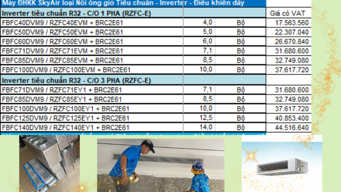 Bảng giá máy lạnh giấu trần Daikin Inverter mới nhất 2025