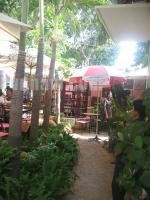 Khu vực sân vườn với những ô dù xinh xắn, hệ thống nước chảy róc rách, hoa lá xinh tươi được chăm chút cẩn thận, thực khách có thể ngồi tán chuyện thoải mái cùng bè bạn.