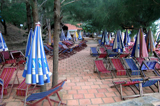 Tôi bước đi trên những viên sỏi, dưới chiếc dù che nghiêng để nhìn khắp lượt nét cười của những người đang “quẳng gánh lo đi mà vui sống". Họ ngồi đó bên nhau giữa Garden, một khu cà phê vườn - biệt thự bên biển Bãi Trước, Vũng Tàu với niềm vui thư giãn cuối tuần.